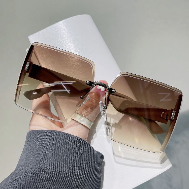 2分鐘前2023新款方形無框切邊太陽眼鏡網紅個性閃粉大框時尚大臉顯瘦墨鏡 - 【新品嘗鮮】一入組 僅售 NT$ 999