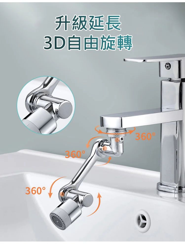 2分鐘前機械臂萬向水龍頭延長器 1080°自由旋轉,隨意伸縮 可直接漱口、沖臉、洗頭、清潔水池!防鏽防腐蝕,方便耐用! - 破盤嗨購【買三送三】6入組 僅需 -NT$1150