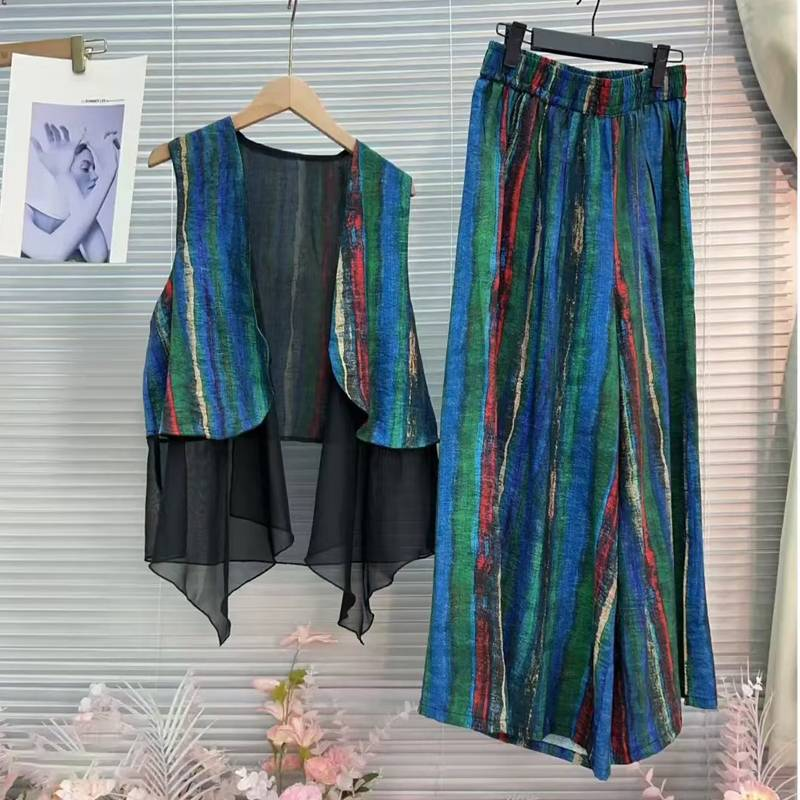 5分鐘前居然這麼顯瘦!色彩感十足的氣質馬甲套裝也太美了吧,假兩件馬甲搭配條紋寬褲,妥妥的慵懶感~ - 【限時下殺】馬甲+褲子一套 僅需 NT$998