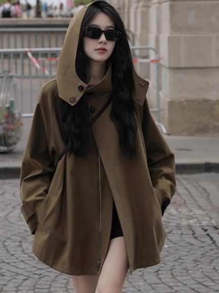 15分鐘前【現貨爆款】秋冬新款 斗篷風衣外套 美拉德英倫風 高品質連帽工裝 - 優惠價一入組NT$1398