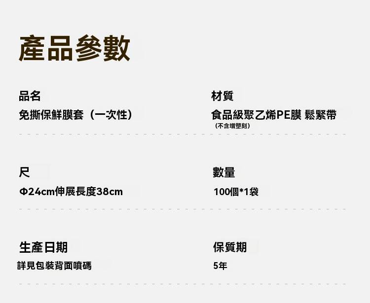 20分鐘前新款保鮮膜套 食品級材質,彈力縮口,任何大小、形狀都能輕鬆套上,保鮮不跑味,方便快速,乾淨衛生,廚房必備好物! - 超夯特惠:五入組(500個)NT$998 再贈送驚喜禮品一份!-NT$998
