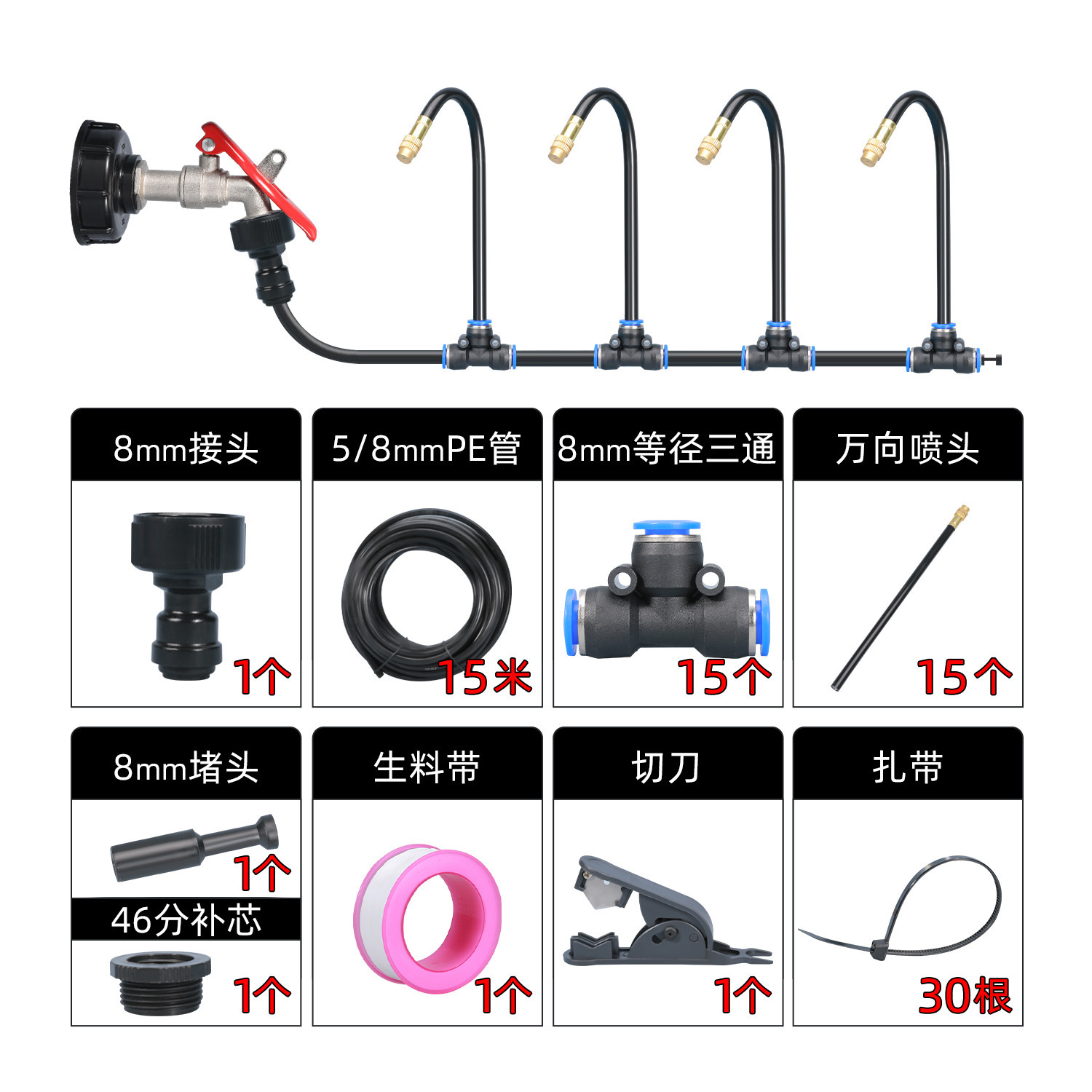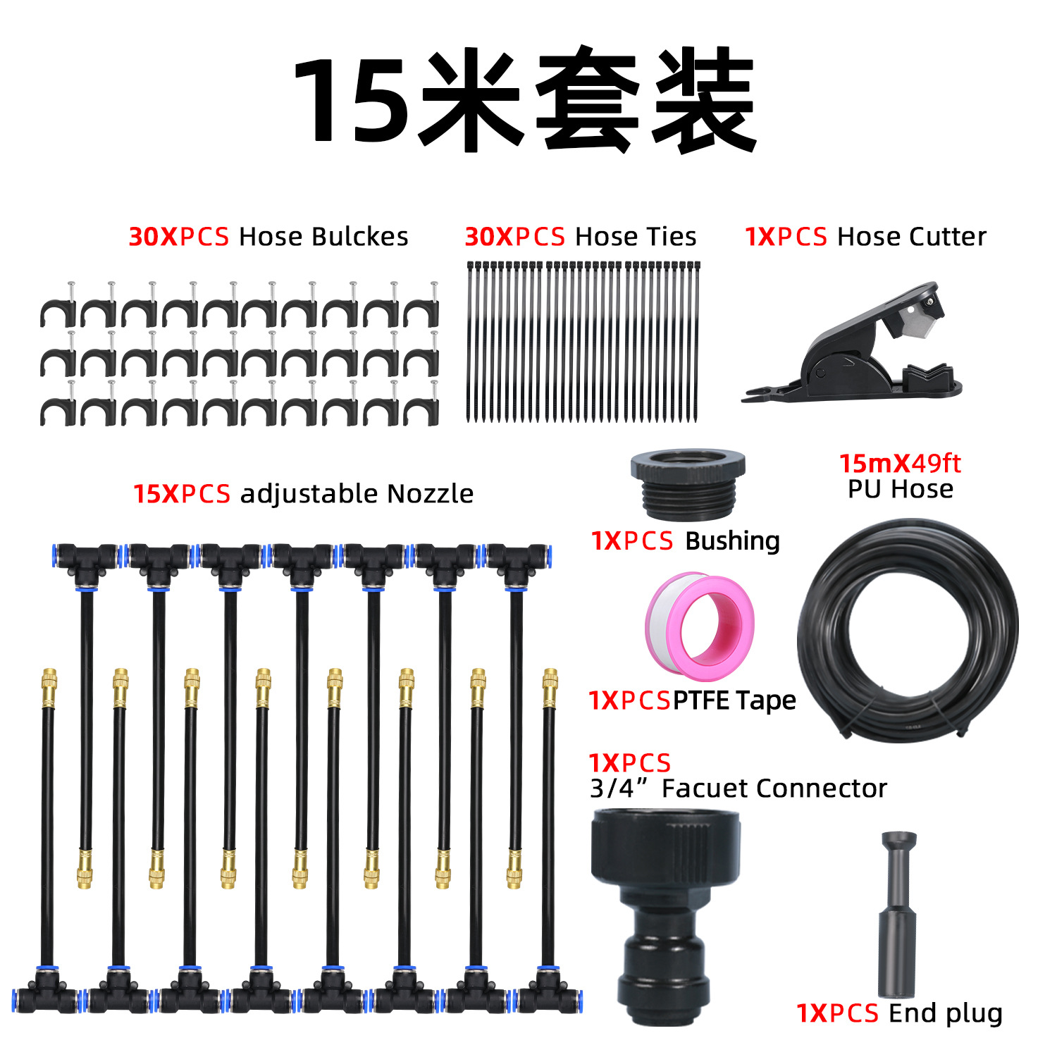 2分鐘前萬向噴頭一體自動澆花器 - 霧化套裝~15米~帶釘【一入組】NT1388