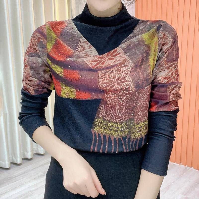 4分鐘前任選買1送1,設計感印花圍巾打底衫,時尚百搭,減齡遮肉顯瘦,內裡德絨保暖不紮膚, 每個色都好看! - 【買一送一】 二入組,NT$1098均價549/1件